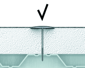 – Овальная шайба, выполненная из алюминиево-цинкового сплава, обеспечивает отличную стойкость к действию коррозии. Форма и тип шайбы обеспечивают возможность легкого монтажа с помощью соответствующих шурупов, используемых при жестком монтаже элементов твердой кровельной изоляции;