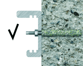 – Система работает по принципу садгезии с основанием обеспечивающего достаточно однородное распределение напряжений вдоль анкера, благодаря чему его можно устанавливать недалеко от краев или в непосредственной близости от других креплений.;