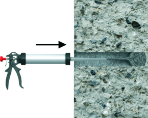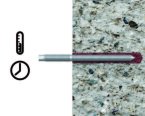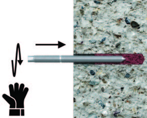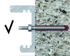 06.Немедленно вставить арматурный профиль, вкручивая его плавными движениями. Удалить лишнее количество смолы вокруг овтерстия до момента ее схватывания, и дождаться полного отвердевания