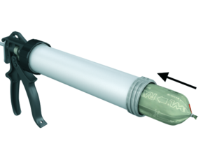 03.Вставить пленочный патрон в выдавливатель и установить на него смесительную насадку