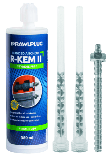 Химический анкер (полиэстровая смола) без стирола с резьбовыми шпильками для оснований из полнотелого и пустотелого кирпича R-KEM II